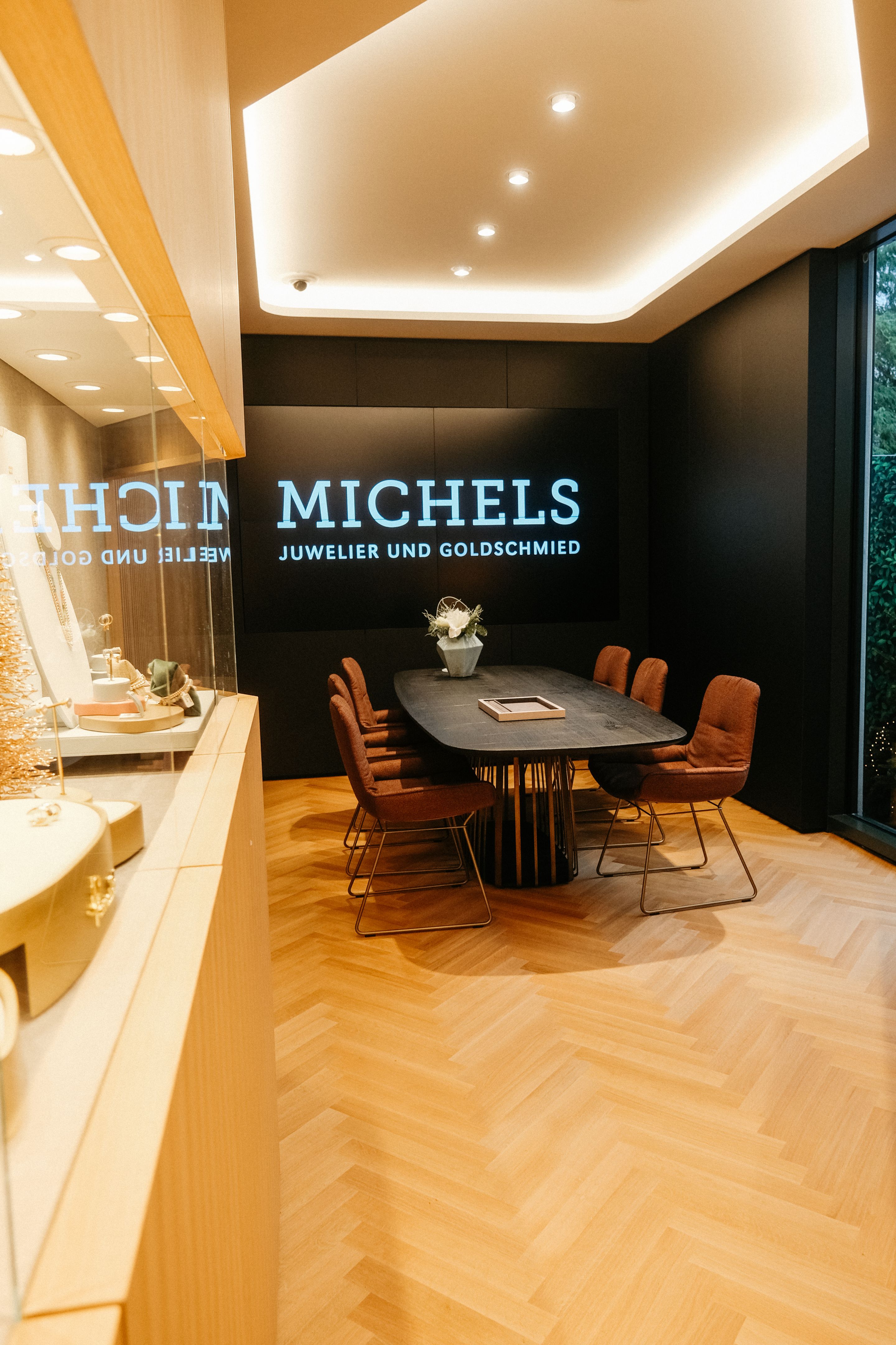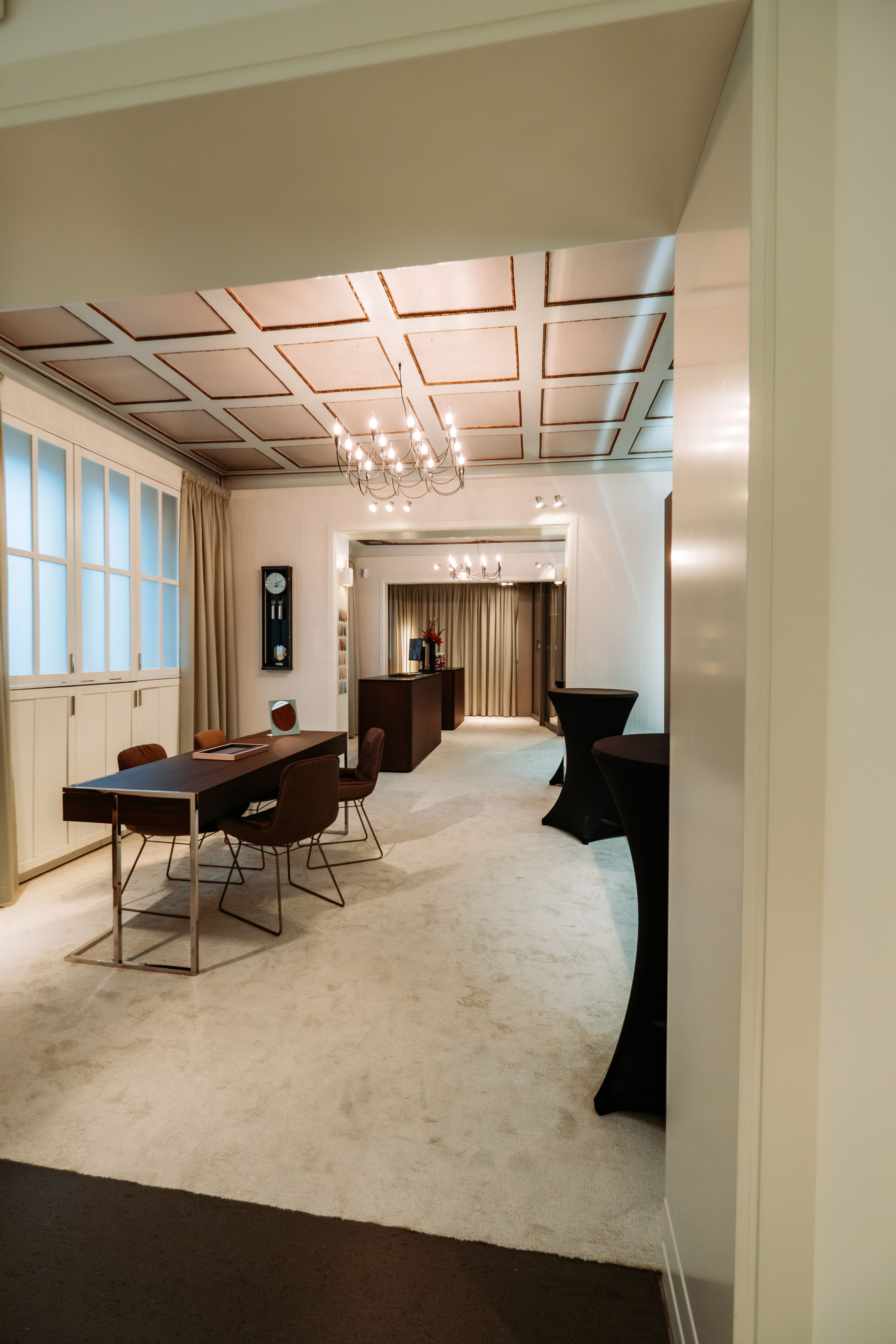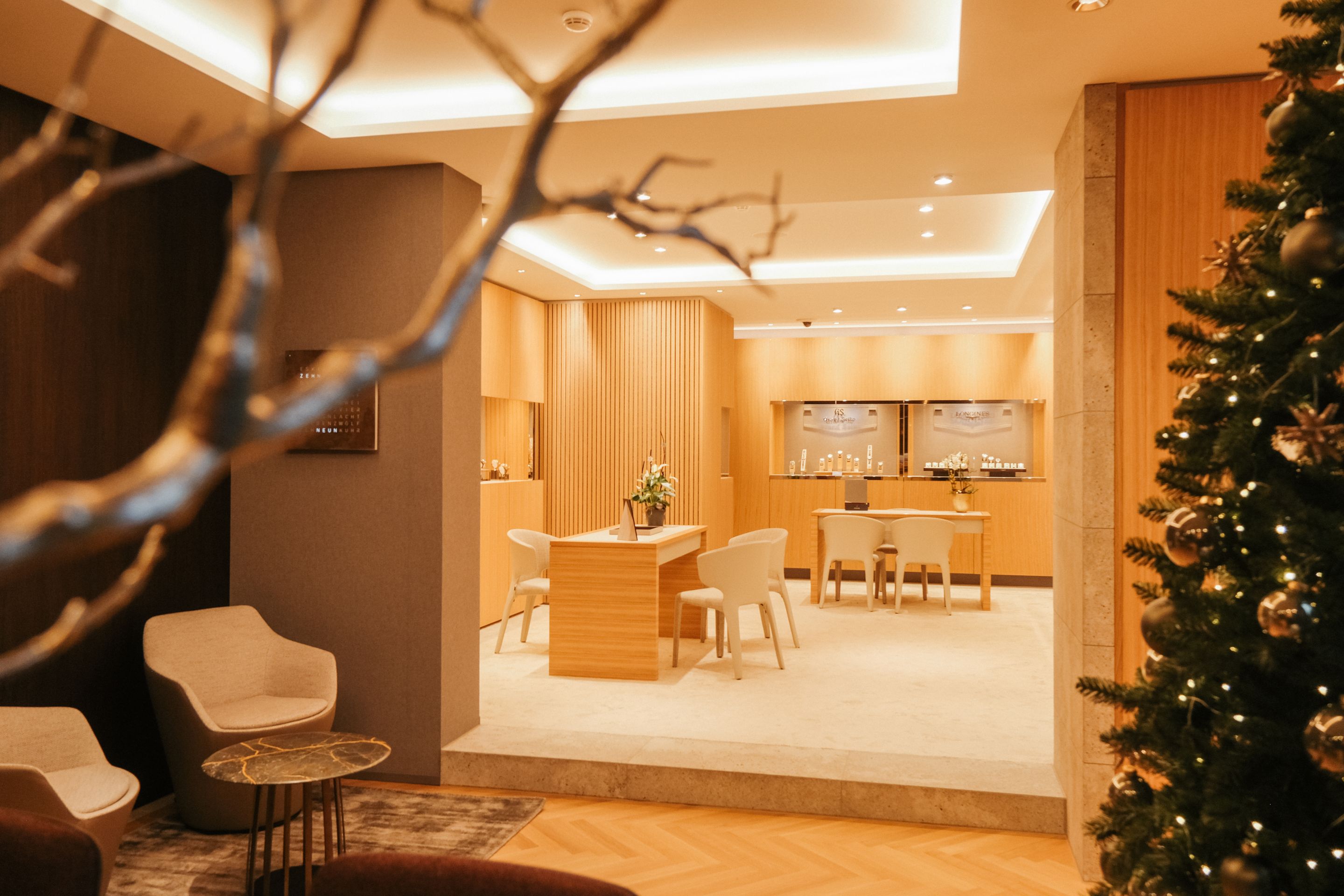 Ein wichtiger Meilenstein folgte im Februar 2024: Büro, Goldschmiede- und Uhrmacher-Werkstätten sind vom Erdgeschoss in neu ausgebaute Räume im ersten Obergeschoss umgezogen. In diesem Zuge wurde auch das historische Gründungszimmer aus dem Jahr 1966 neu interpretiert. Heute ist es als Kaminzimmer ein exklusiver Veranstaltungsraum, der den passenden Rahmen für besondere Events bietet.