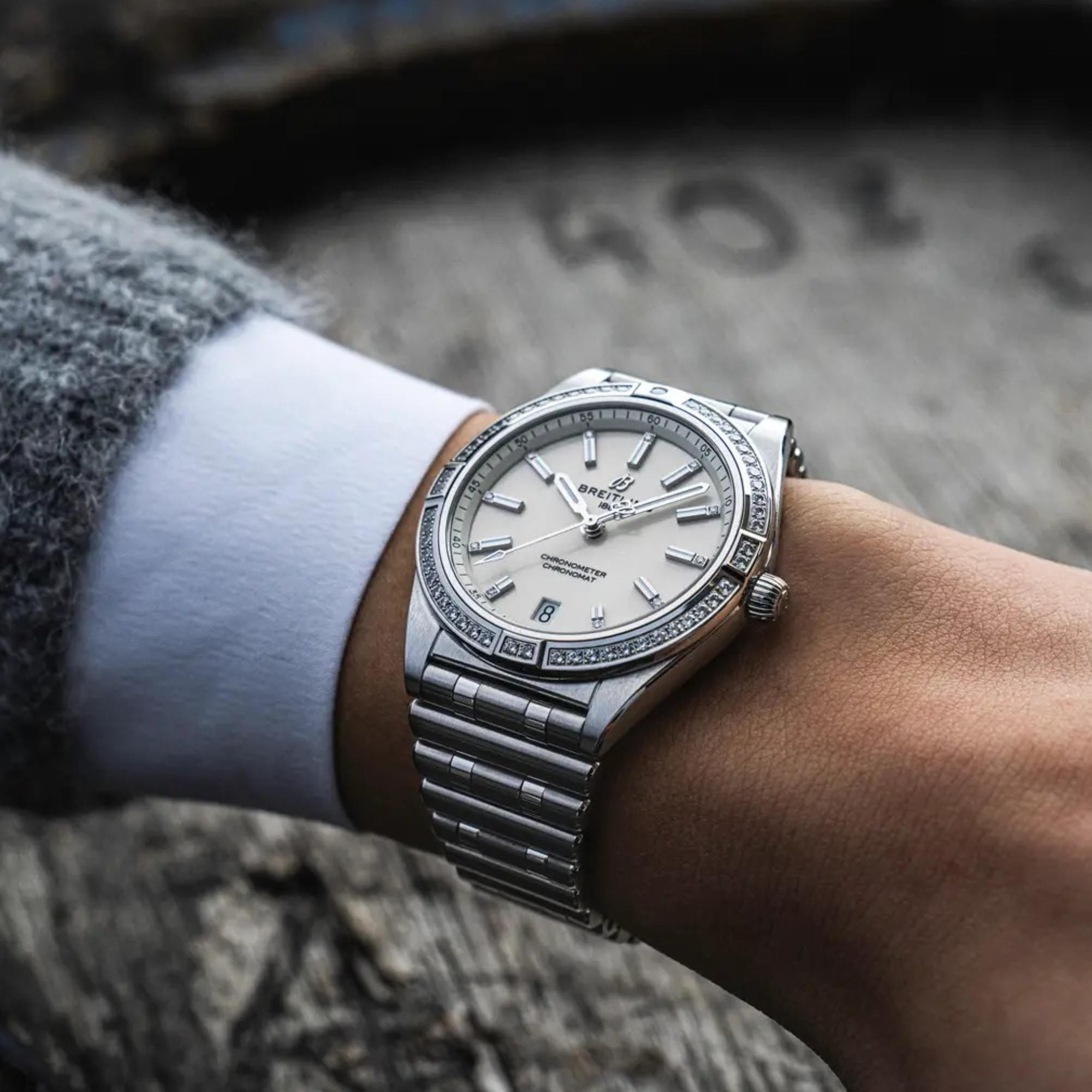 Ref. A10380591A1A1 - Stylish und doch elegant – die Chronomat Automatic 36 mit modernem Retro-Touch ist eine vielseitige, sportlich-schicke Uhr für jeden Anlass. Die breite Palette an Metallgehäusen reicht von coolem Edelstahl über die zweifarbigen Allrounder bis hin zu luxuriösem 18-karätigen Rotgold. Diamantbesetzte Lünetten und Zeiger sowie farbenfrohe Zifferblätter zaubern auf Wunsch ein zusätzliches Funkeln auf den Zeitmesser für Damen. Die Chronomat Automatic 36 wird von dem Breitling-Kaliber 10, einem COSC-zertifizierten Chronometer, angetrieben und auf dem legendären, bequemen Rouleaux-Armband mit Doppelfaltschliesse der Marke präsentiert.