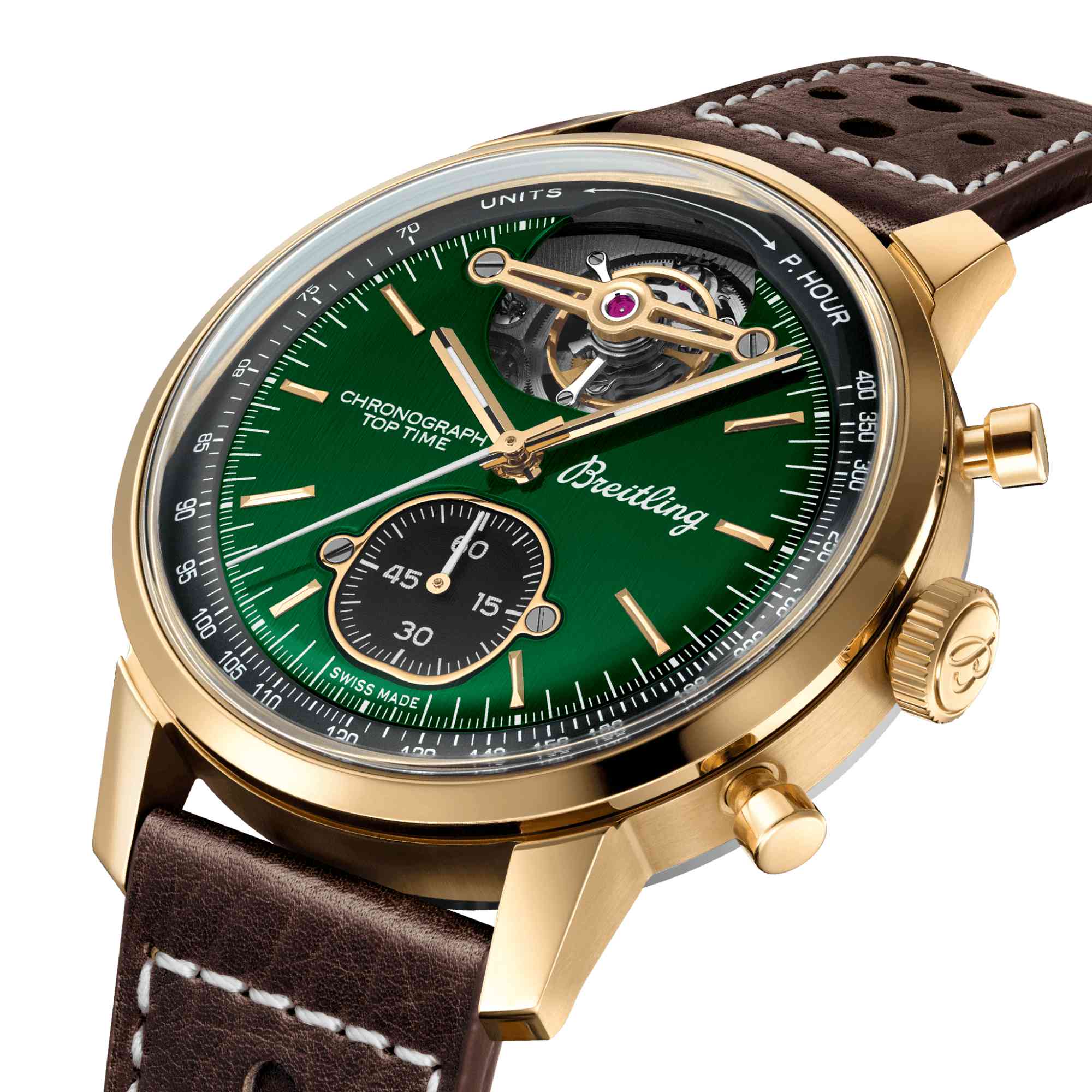Ref. NB21251A1L1X1 - Der Ford Mustang der ersten Generation, der von 1964 bis 1974 produziert wurde, war das Auto der Stunde, wenn es darum ging, im coolen Amerika der 1960er-Jahre auf die Strasse zu gehen. Die lebende Legende wird nach wie vor produziert, doch Autoliebhaber wissen, dass die allerersten Modelle, die den ungezähmten Geist der 1960er-Jahre einfingen, auch die coolsten waren. Die Top Time B21 Ford Mustang verfügt über die Farben ihres Oldtimer-Pendants sowie über ein perforiertes Lederarmband, eine Tachymeterskala und kontrastierende «Squircle»-Zifferblätter (nicht ganz quadratisch, nicht ganz rund), die die besondere Atmosphäre klassischer Armaturenbretter erzeugen. In seinem Gehäuse aus Bronze und Titan surrt ein Werk, mit dem man angeben kann: der aussergewöhnliche Chronograph Tourbillon B21 von La Joux-Perret.