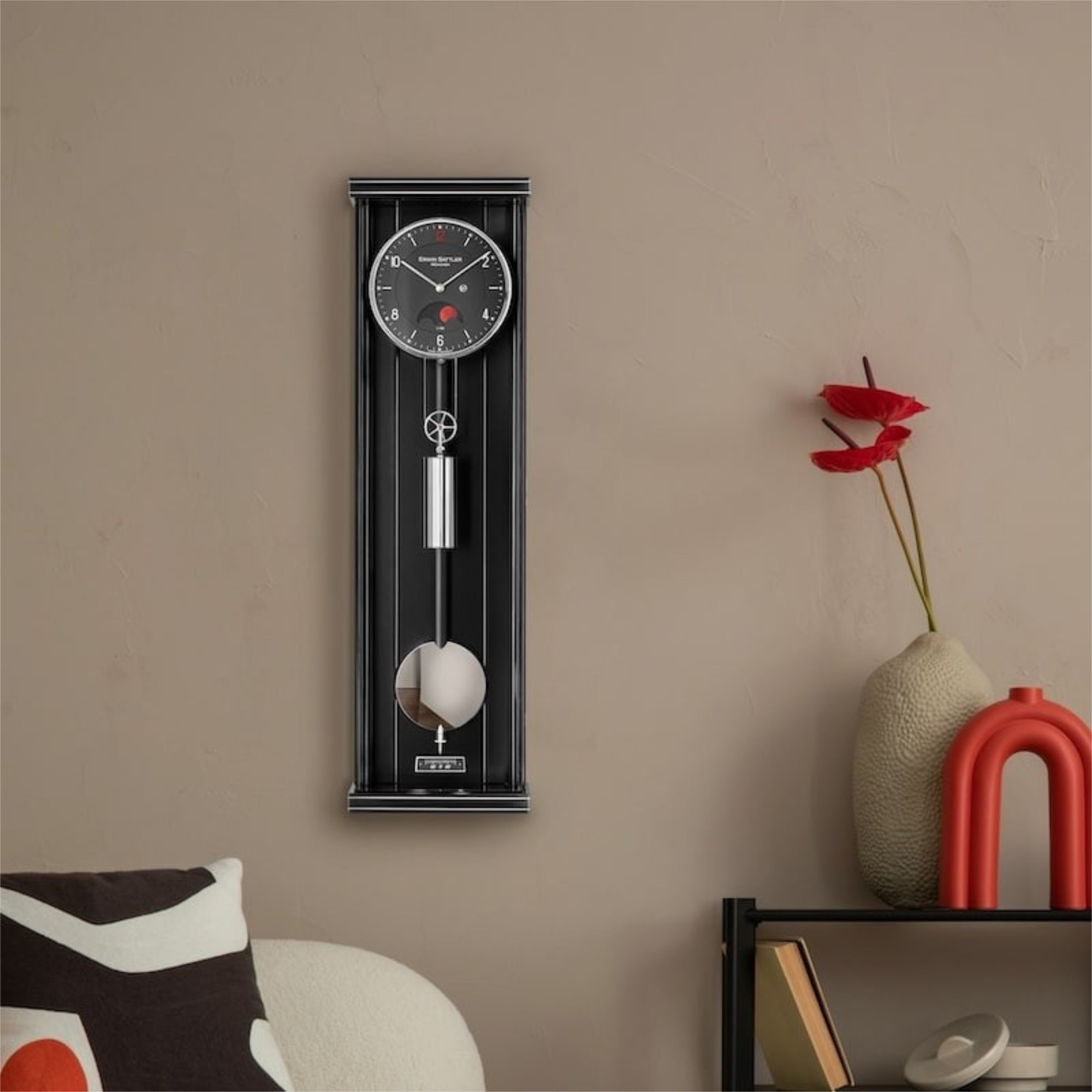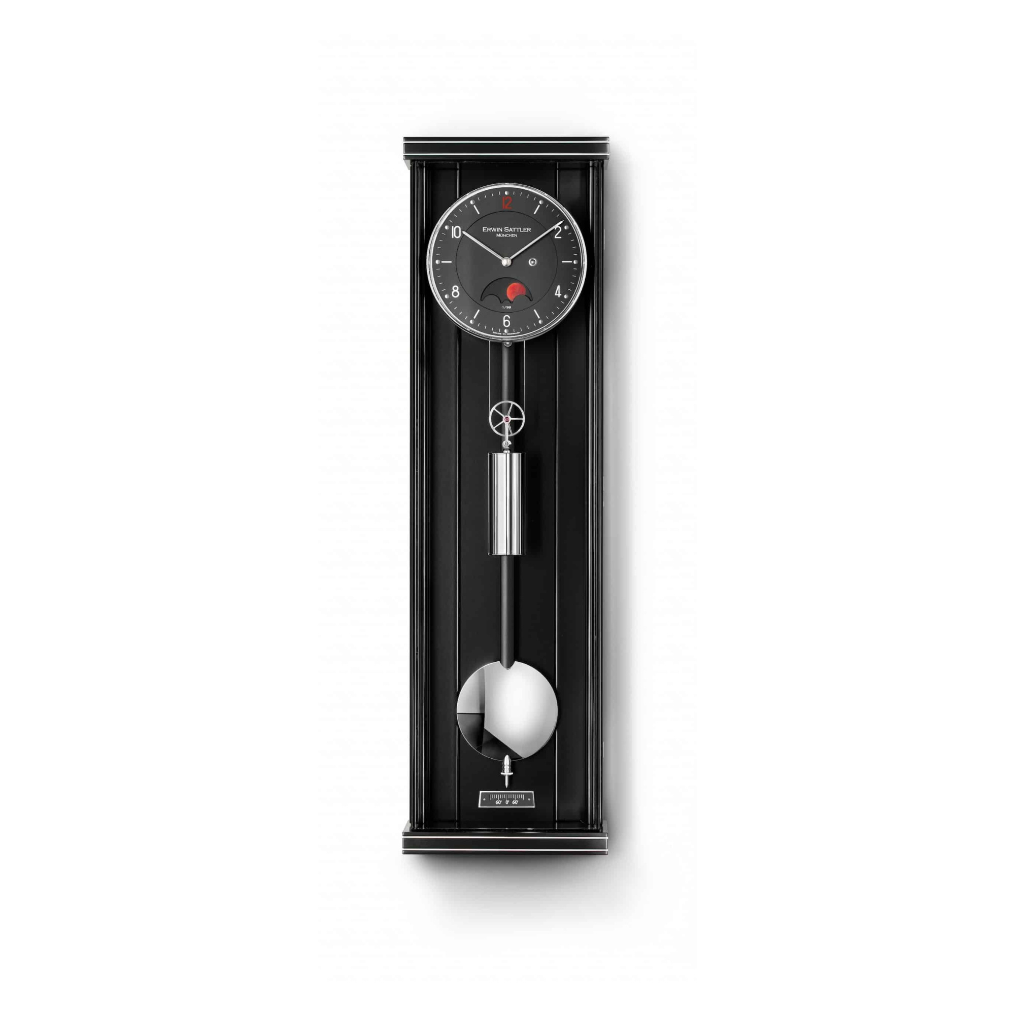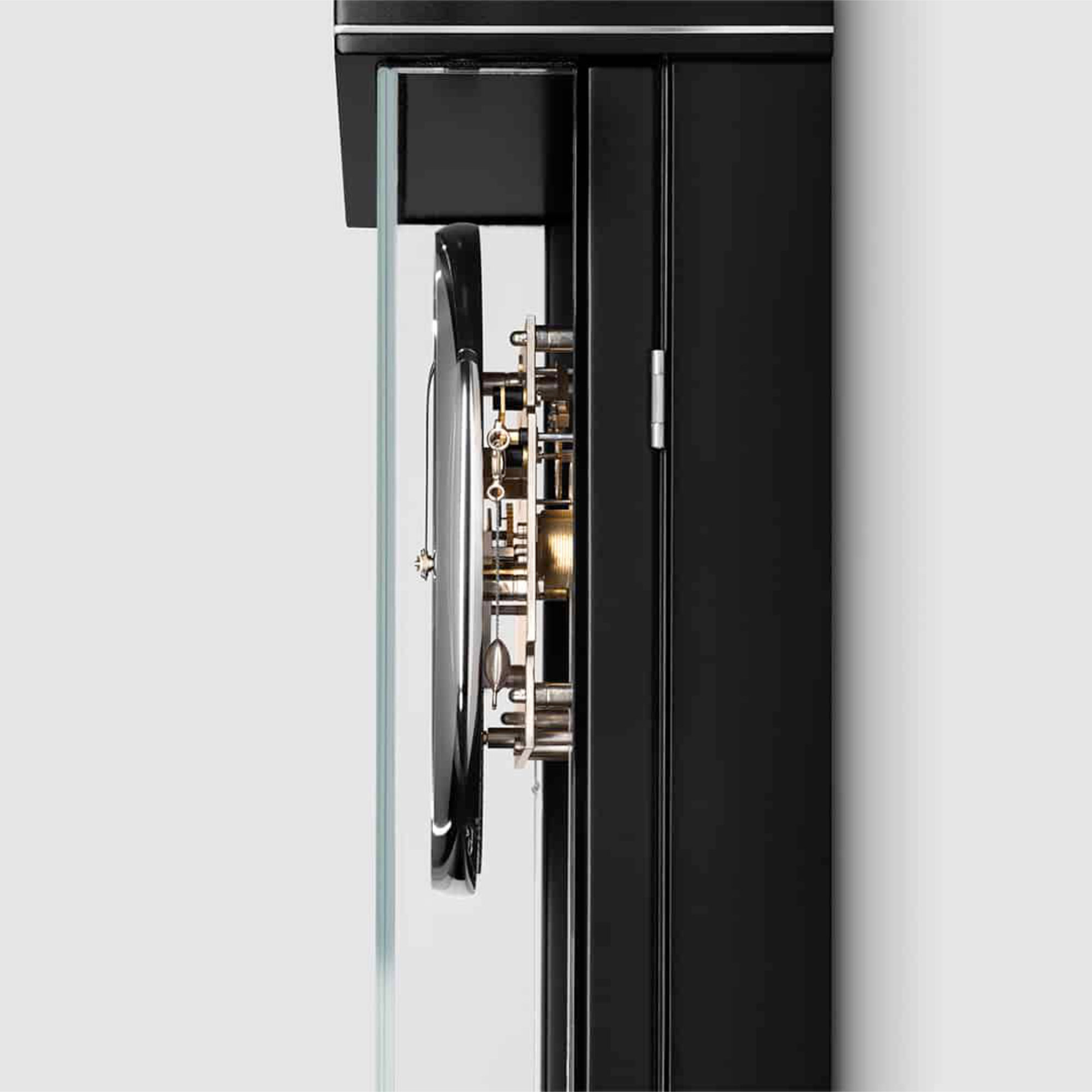 Gangregler: Holzstabpendel mit massiver gedrehter Messinglinse, poliert und vernickelt