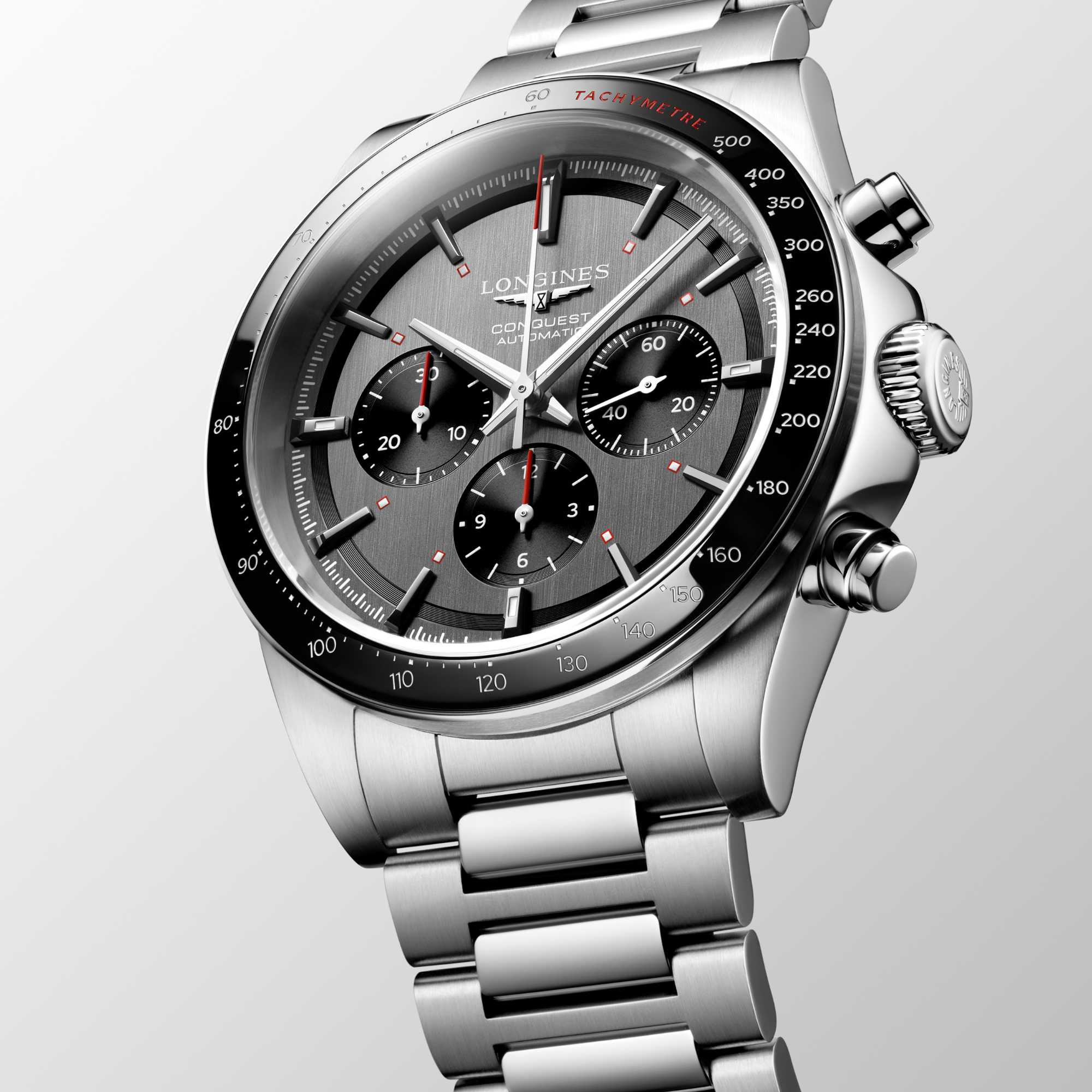 Ref. L3.836.4.52.9 - Die Conquest, die ultimative Uhr für jeden Tag, war auch die erste Longines Kollektion, deren Name 1954 durch das Eidgenössische Institut für Geistiges Eigentum geschützt wurde. Seitdem hat sich die Kollektion durch Design und Technologie weiterentwickelt, ist aber ihrer ursprünglichen Identität treu geblieben und strahlt eine harmonische Mischung aus Kühnheit, zeitgenössischem Design und sportlicher Eleganz aus. Jede Conquest Chronograph Uhr ist ein Beweis für das unermüdliche Engagement von Longines für Leistung und uhrmacherische Exzellenz. Diese eleganten Uhren werden von exklusiven Longines Kalibern angetrieben, die mit einer Unruhspiralfeder aus Silizium ausgestattet sind.
