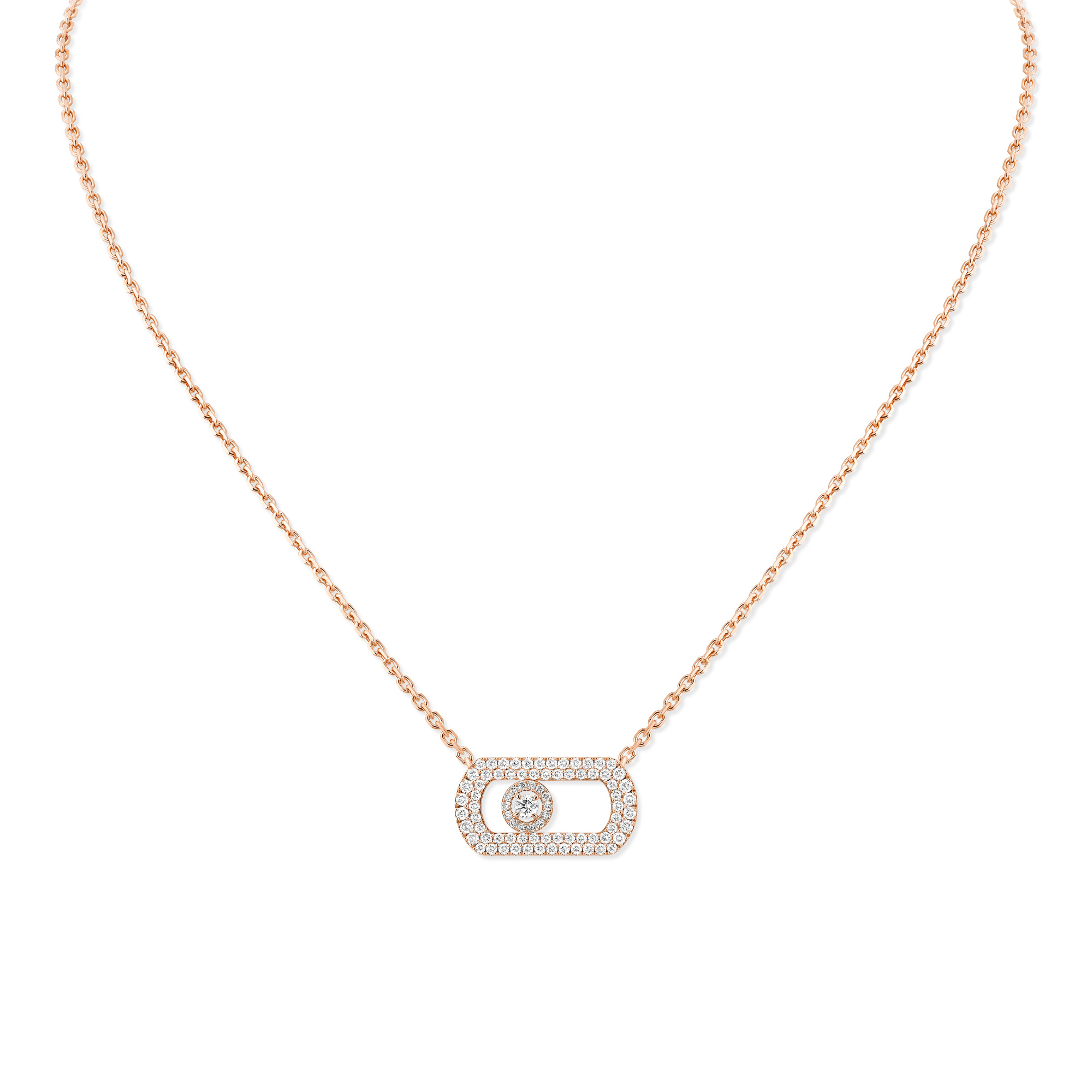 Ref. 12945-PG - Move in seiner verwegensten Version! Valérie Messika erfindet das Kultmotiv der Maison neu und entwirft es mit skulpturaleren und selbstbewussteren Konturen. Diese Halskette aus Gold und Diamanten setzt das Dekolleté strahlend in Szene. Der bewegliche Diamant ist von Messikas unverwechselbaren mit Diamanten ausgefassten Halo umgeben, um noch mehr Glanz zu erzeugen! Ein statuarisches Luxusschmuckstück für alle, die das Move voller Selbstbewusstsein tragen möchten. Entdecken Sie auch die Versionen aus Weißgold und Gelbgold!