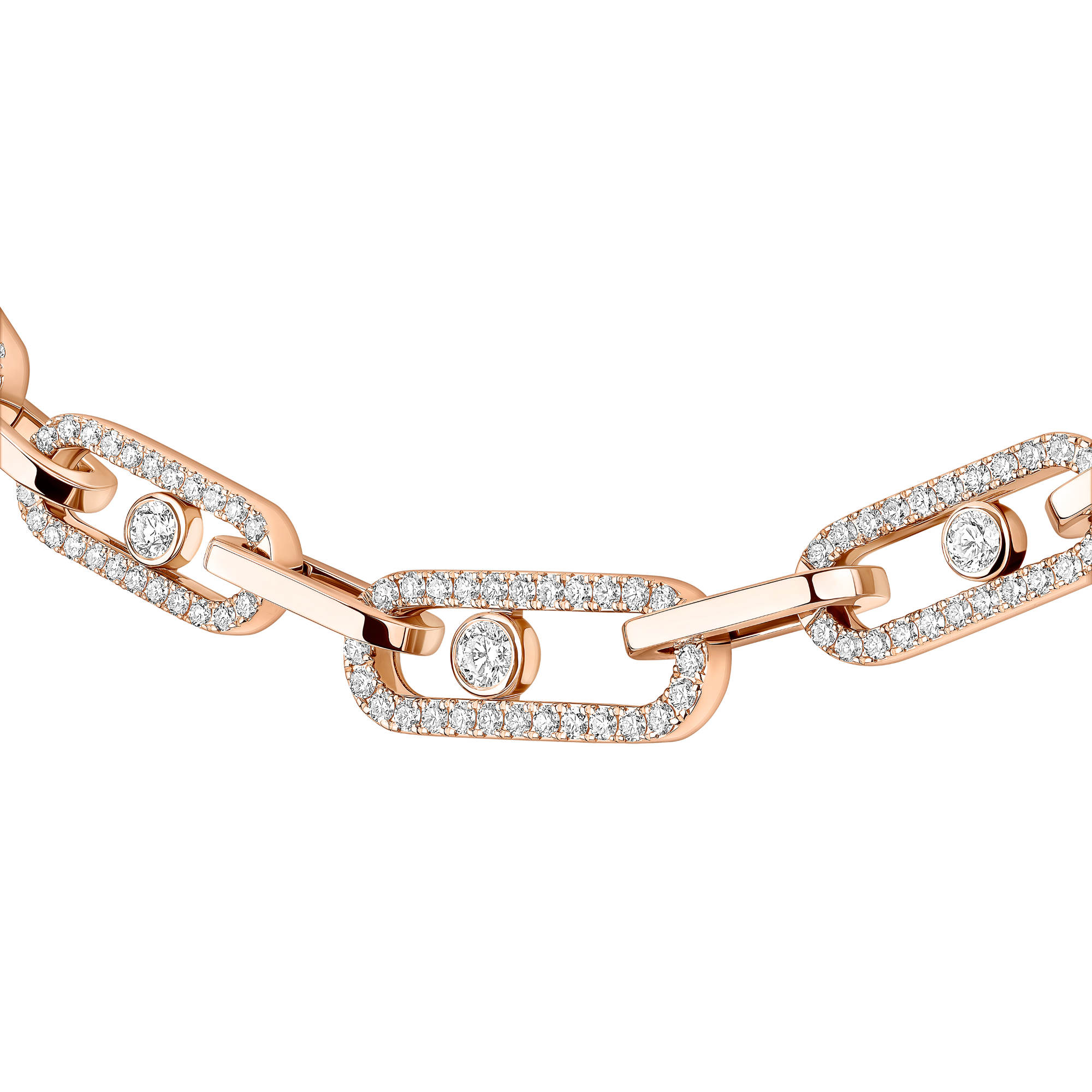Ref. 14042-PG - Mit der Move Link Halskette aus Roségold erstrahlt der Gliederschmuck in neuem Glanz. Das luxuriöse Schmuckstück bietet mehr Diamanten und mehr Glanz, indem es sieben vollständig mit Diamanten ausgefasste Motive kombiniert. Ein charakteristisches Design, das das Move-Motiv in ein starkes und geschmeidiges XXL-Glied verwandelt. In dieser Version kontrastiert das kraftvolle Design subtil mit dem sanften Roségold, was eine originelle Kombination ergibt. Die Gliederkette, die fest im Zeitgeist verankert ist, zeigt sich hier in einem kostbaren und einzigartigen Akzent: Diese moderne und edle Halskette aus Gold und Diamant zieht alle Blicke auf sich und unterstreicht mit Kraft und Eleganz jedes Outfit.