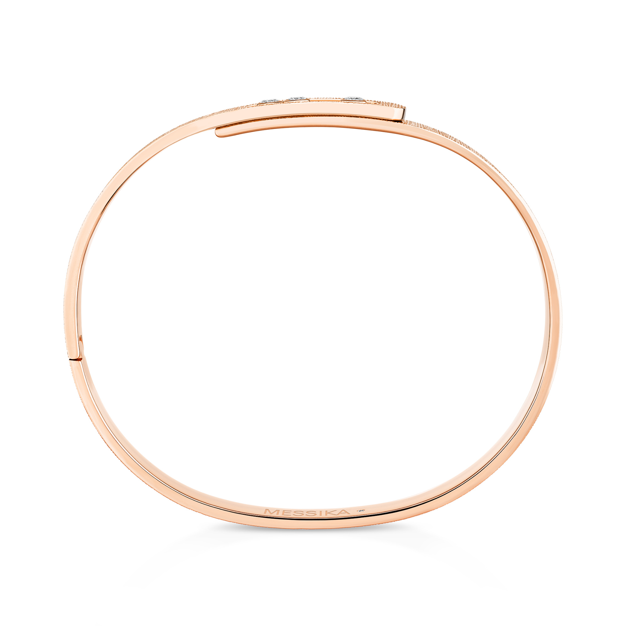 Ref. 14481-PG - Der Move Noa Armreif, ein unverwechselbares Schmuckstück von Messika, erfindet sich in einem neuartigen Dialog zwischen ziseliertem Roségold und Diamanten neu. Durch die präzise Handarbeit fängt jede Ziselierung das Licht ein und reflektiert es für einen intensiven Effekt. Das Roségold zeigt sich hier in einem subtilen Vintage-Akzent. Das Spiel mit Materie und Relief in Verbindung mit dem Rhythmus der beweglichen Diamanten hüllt das Handgelenk in einen ausdrucksstarken und selbstbewussten Stil, ohne jemals zu übertreiben. Ein unverwechselbares Diamantarmband für Damen und Herren, das allein oder in Kombination mit anderen Messika Armreifen aus Gold und Diamanten getragen werden kann.