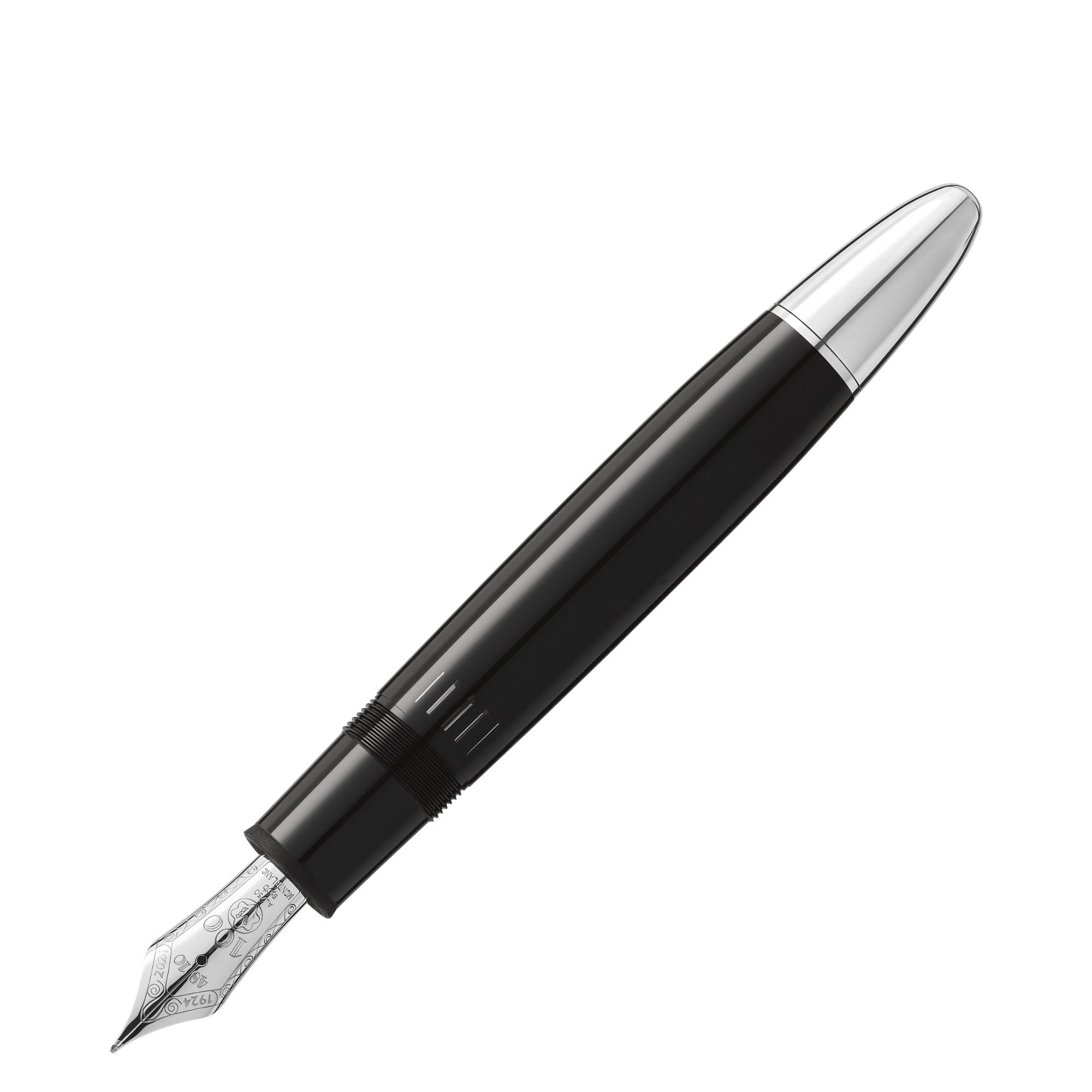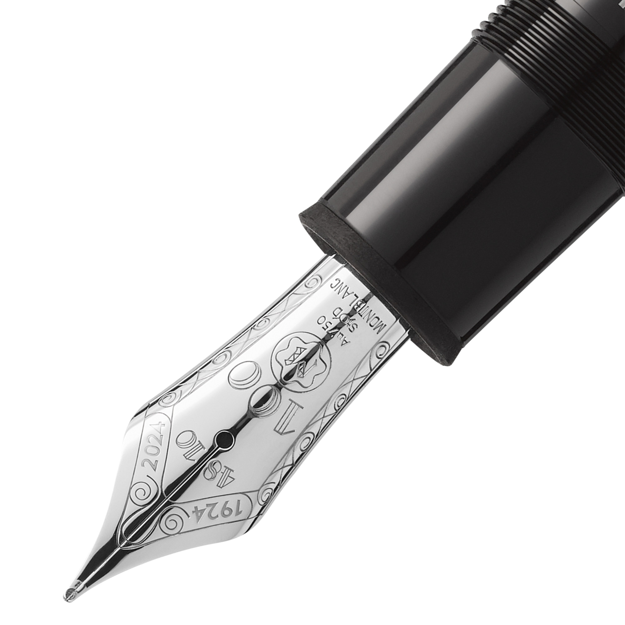 Korpus und Kappe aus schwarzem Edelharz mit platinierten Beschlägen
