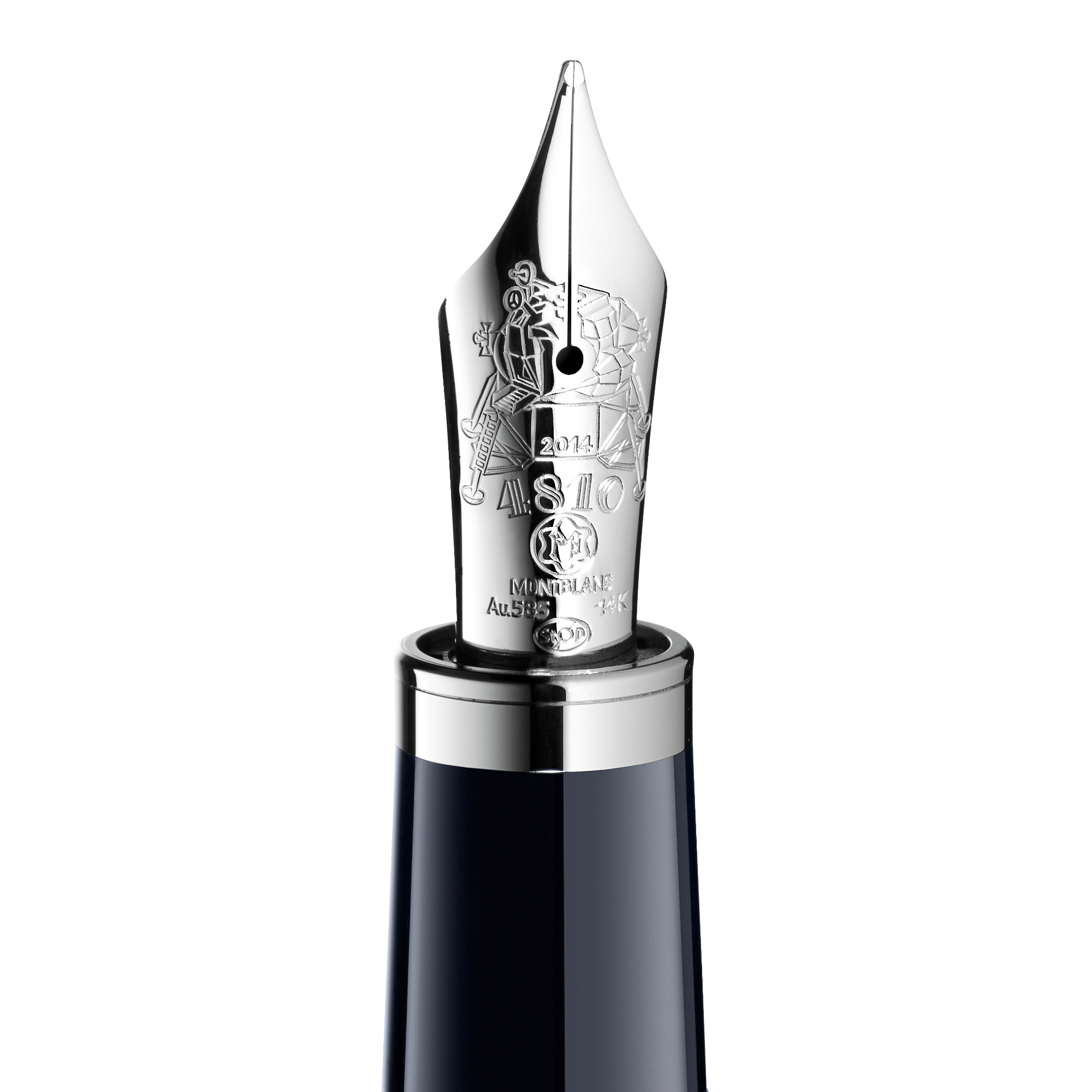 Ref. MB132088 - Die Special Edition John F. Kennedy würdigt eine der bekanntesten Persönlichkeiten der modernen Geschichte. In subtilen Details verweist sie auf das Leben des ehemaligen US-Präsidenten. Das blaue Edelharz erinnert an Kennedys Zeit in der U.S. Navy und den berühmten Ivy-League-Stil. Seine Initialen „JFK“ zieren als Gravur den platinierten Clip, und die drei platinierten Kappenringe stehen für die drei Brüder Kennedys. Als Hommage an die nationalen Hoffnungen und Träume, die mit dem Apollo Raumfahrtprogramm verbunden waren, das Kennedy besonders am Herzen lag, verfügt die handgefertigte Feder aus 585er Gold über eine Gravur der berühmten Mondfähre, die 1969 auf dem Mond landete. Gekrönt wird die Special Edition vom Montblanc Emblem aus Edelharz.