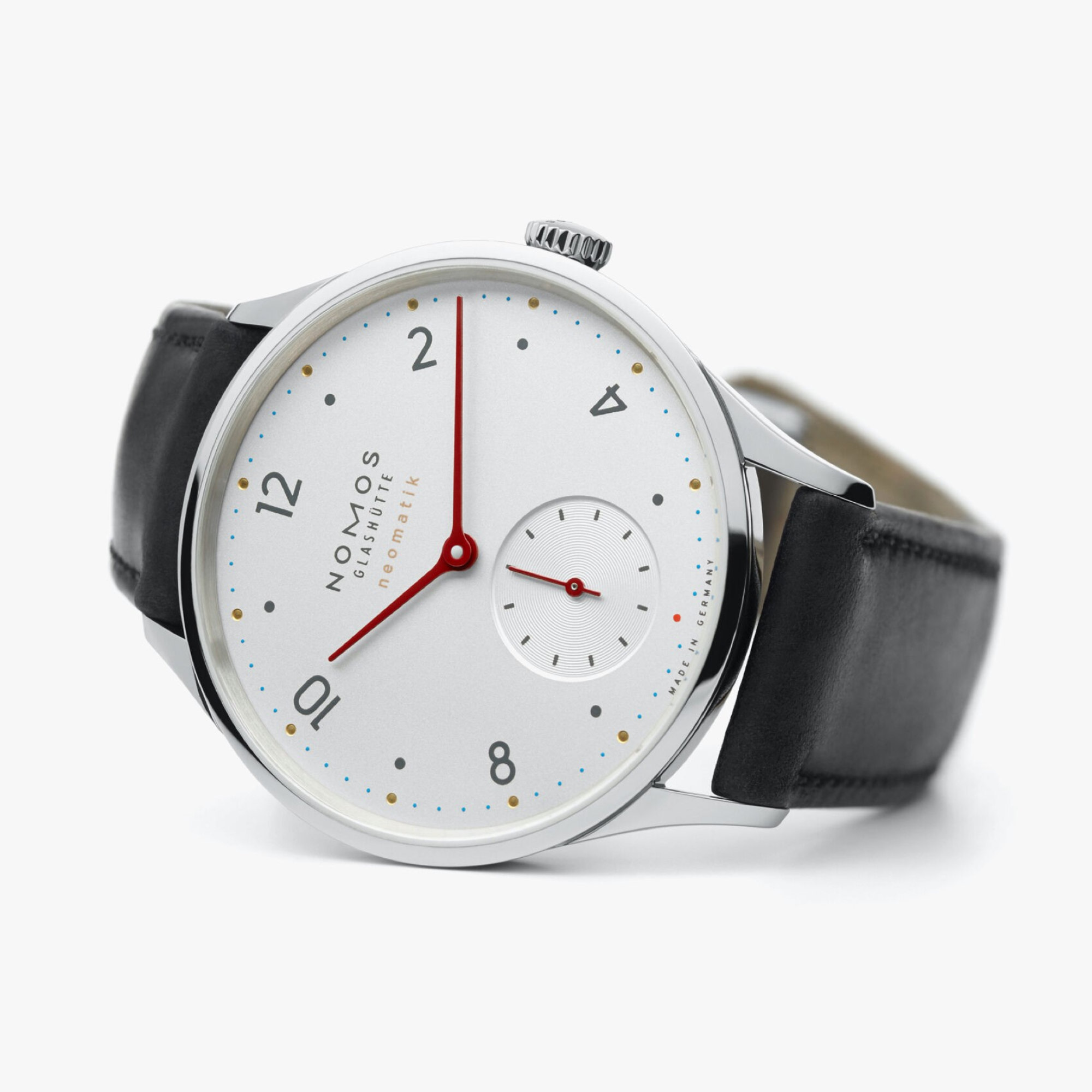 Hauseigenes Manufakturkaliber mit Automatikaufzug; NOMOS-Swing-System mit Unruhspirale temperaturgebläut
