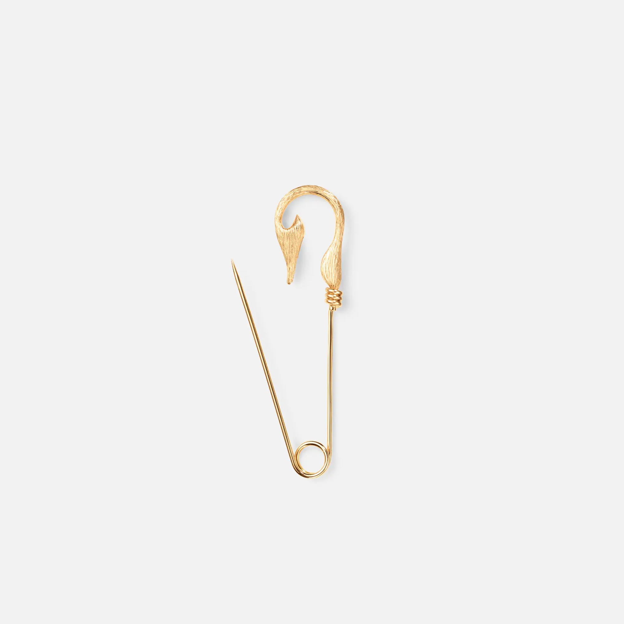 Ref. A3213-401 - Diese von Sofia Lynggaard Normann entworfene Fish Hook-Brosche, klein, ist aus 18-karätigem Gelbgold gefertigt. Die Oberfläche des Goldes wird sorgfältig von Hand satiniert, um eine einzigartige Oberflächenstruktur zu erzielen. Die Gesamtlänge der Brosche beträgt 45 mm. Kann mit Anhängern kombiniert werden, die separat erhältlich sind.