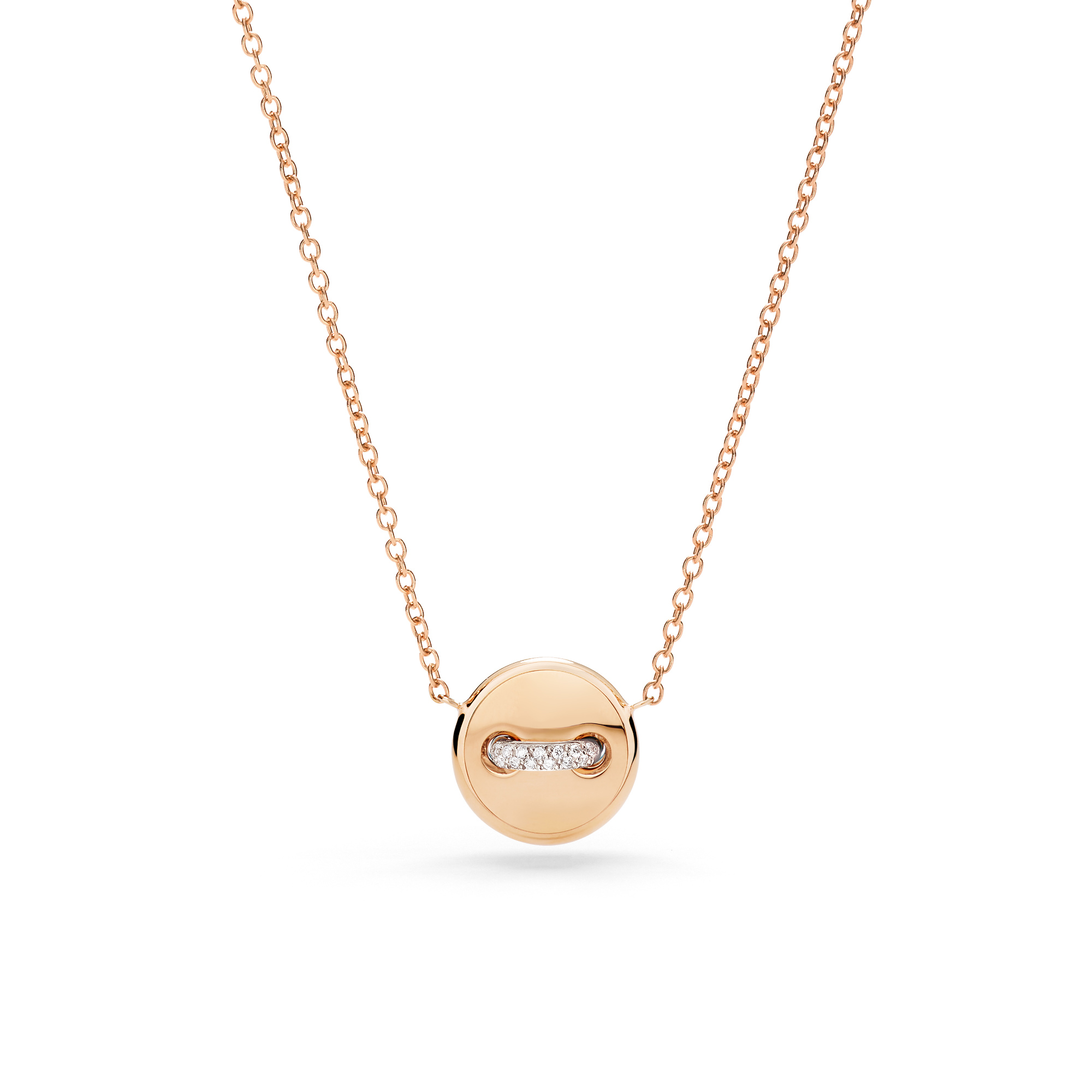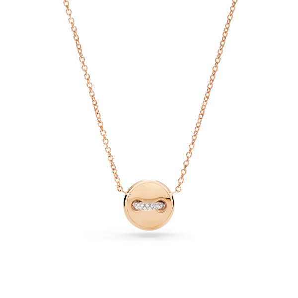 Ref. PCC5031O7WHRDB0TU - Die Pom Pom Dot Kollektion interpretiert das Erbe von Pomellato neu, inspiriert von einer knopfförmigen Goldkette aus dem Jahr 1974. Jede reversible Kreation präsentiert zwei unterschiedliche Seiten und verwandelt das historische Knopfmotiv in ein Symbol für Verbundenheit und Schutz. Dieses zeitgenössische Design feiert sowohl Funktionalität als auch Symbolik durch vielseitige, verspielte Schmuckstücke.