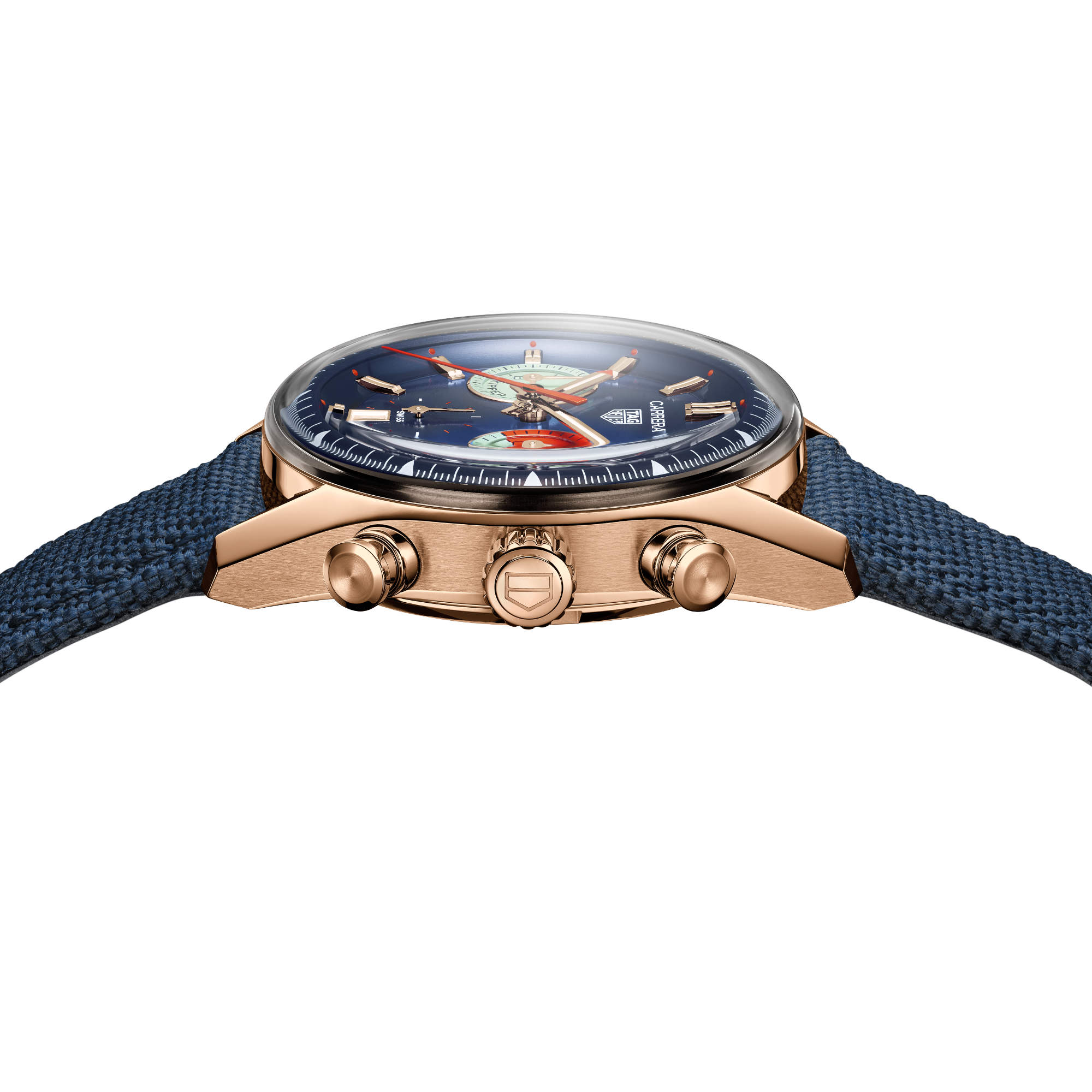 Ref. CBS2241.FN8023 - Begeben Sie sich auf eine luxuriöse Odyssee mit der TAG Heuer Carrera Chronograph Skipper, ein Meisterwerk mit 39 mm Durchmesser zur Feier des geschichtsträchtigen Segelerbes der Maison. Dieser Zeitmesser aus 18 K 5N Roségold ist ein wahres Schmuckstück für Sammler und Segelfans.