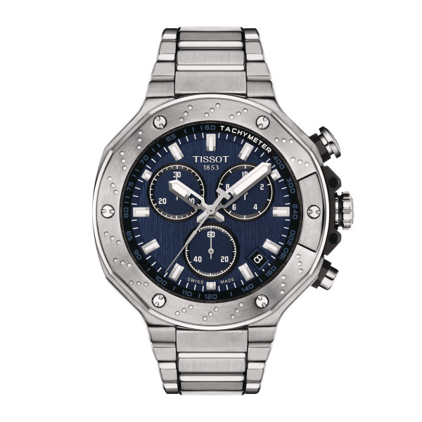 Wie beim Motorradfahren selbst, trifft auch bei Tissot Leidenschaft auf Innovation und Stil. Die T-Race Kollektion ist von diesem Lebensstil inspiriert – von Freiheit, der offenen Straße und Leidenschaft. Sie ist die Uhr der Wahl für den Gentleman-Biker. Die Uhr ist wasserdicht bis zu einem Druck von 10 bar (100 m), mit einem Quarz-Chronographenwerk ausgestattet und verfügt über markante, mit SuperlumiNova Leuchtmasse beschichtete Stunden- und Minutenzeiger.