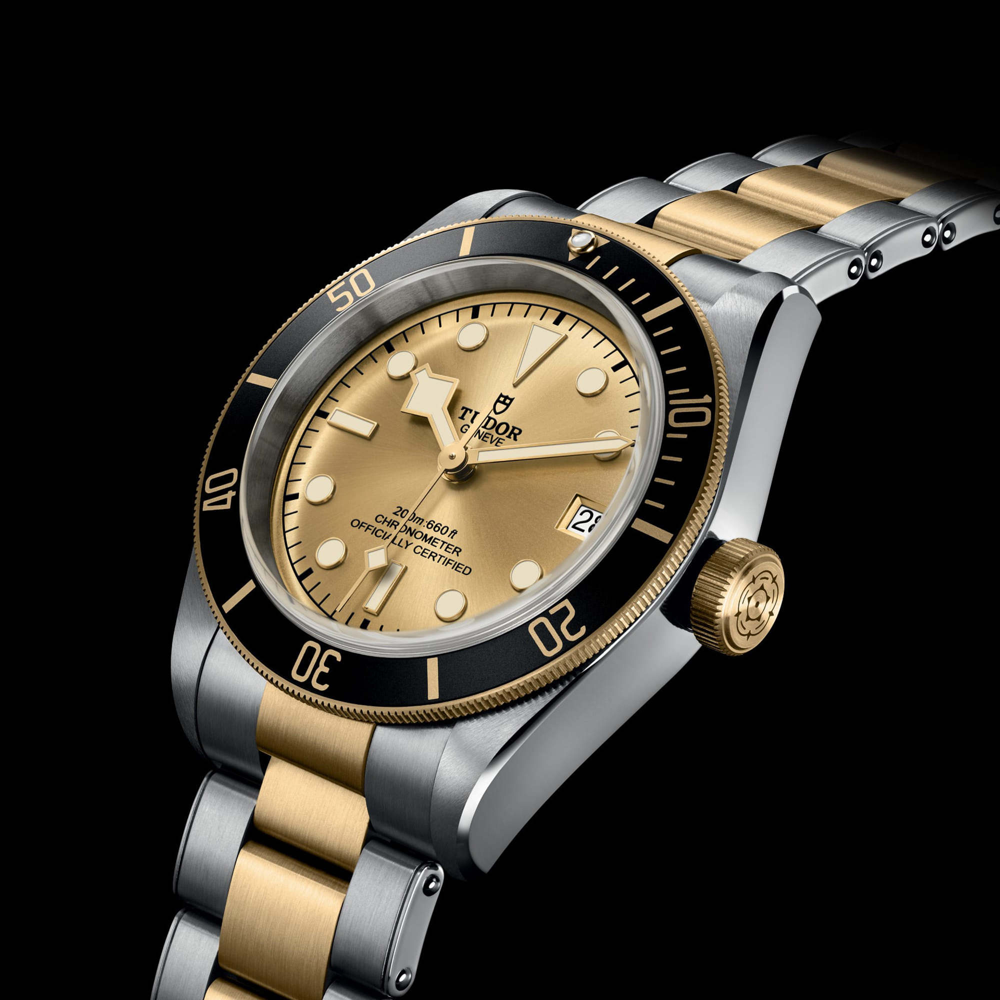 Ref. M79733N-0004 - Die berühmte Taucheruhr Black Bay von TUDOR ist jetzt auch in Gelbgold und Edelstahl erhältlich. Ausgestattet mit dem Manufakturwerk Kaliber MT5612, führt das Modell Black Bay S&G zudem die Datumsfunktion in die Black Bay Linie ein. - Ein Kultmodell, das 60 Jahre TUDOR Taucheruhren mit außergewöhnlicher Handwerkskunst feiert. Durch die Veredelung der Black Bay mit Gelbgold entsteht eine neue Modellversion mit dem Namen S&G für Steel & Gold. In ihr werden die Linien und Proportionen der Black Bay beibehalten, während die drehbare Lünette und die Aufzugskrone aus Gelbgold hergestellt sind. Die mittleren Elemente des Edelstahlbandes sind ebenfalls in diesem Edelmetall gestaltet und verleihen der Uhr so eine formellere Anmutung.