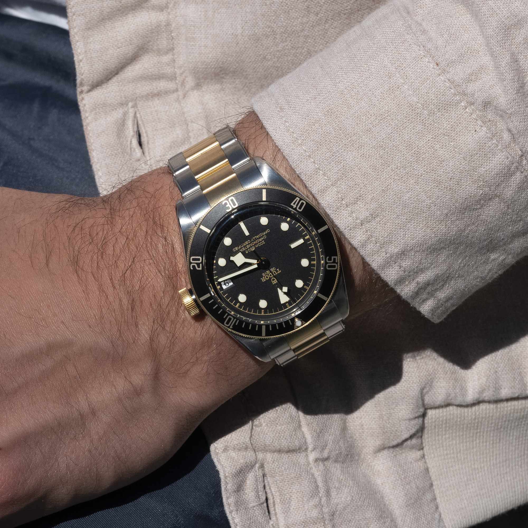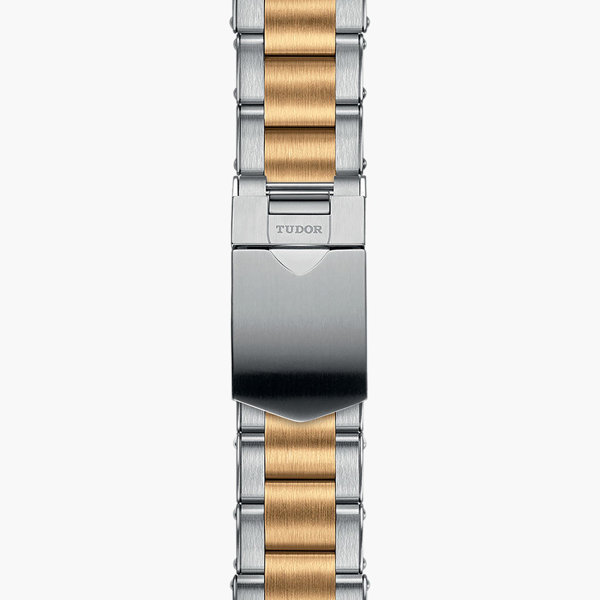 Ref. M79733N-0008 - Die Black Bay ist ein Kultmodell, das 60 Jahre TUDOR Taucheruhren mit außergewöhnlicher Handwerkskunst feiert. Durch die Veredelung der Black Bay mit Gelbgold entsteht eine neue Modellversion mit dem Namen S&G für Steel & Gold. Die TUDOR Black Bay S&G behält die allgemeine Linienführung und Abmessungen der Black Bay Linie bei, erhält jedoch eine formellere Ausstrahlung mit ihrer drehbaren Lünette, ihrer Aufzugskrone und dem goldenen Mittelelement des Edelstahlarmbands. Die Black Bay S&G ist mit einem schwarzen Zifferblatt oder mit einem neuen champagnerfarbenen Zifferblatt erhältlich.