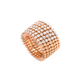 Es bedarf 988 einzelner Komponenten und 42.000 Schweißpunkte, um einen Ring in der Manufaktur SERAFINO CONSOLI herzustellen, der sich stufenlos über mehr als 20 verschiedene Ringgrößen verstellen lässt. Viele dieser einzigartigen Stücke finden sich in der bekannten Brevetto Kollektion.